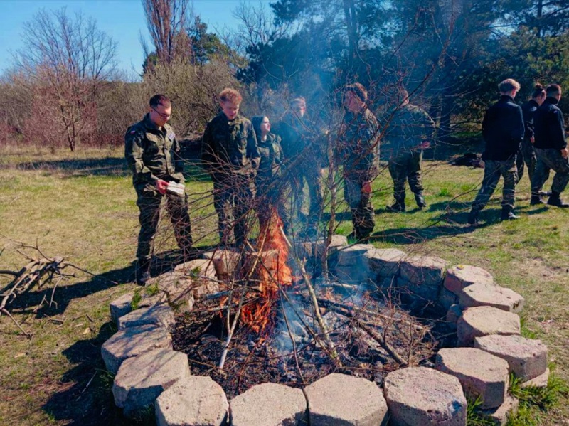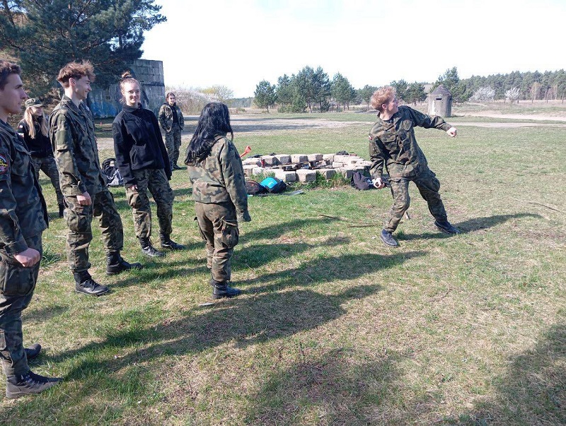 21 kwietnia br. uczniowie klas mundurowych pod opieką p. Romana Powolnego sprawdzali swoje umiejętności w praktyce podczas zajęć terenowych na poligonie pilskiego lotniska.